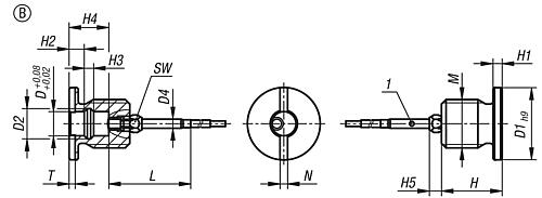 Beim Einsatz mehrerer Buchsen lässt sich feststellen, in welcher davon sich der Kugelsperrbolzen oder Steckbolzen befindet.