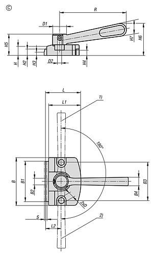 Flachspanner mit Exzenter, mit Spannhebel, Form:C, S=1, F=4, Vergütungsstahl schwarz brüniert - K1696.20400