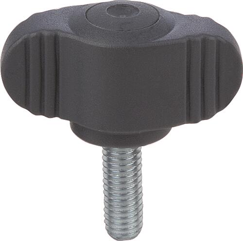 Produktinformationen "Flügelgriff Miniwing, Biopolymer D=M08X20 A=28, H=15, Form:L, schwarzgrau RAL7021, Komp:Edelstahl - K0274.10000890X20"