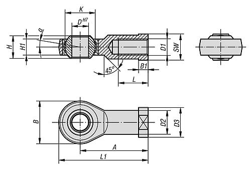 Die Gleitlagerung der Gelenkköpfe ist wartungsfrei. Die Anschlussmaße entsprechen DIN 648 Formreihe KJ.