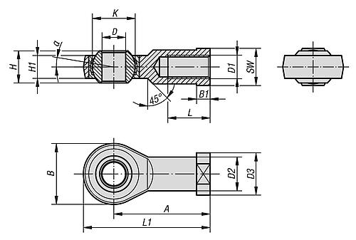 Produktinformationen "Gelenkkopf DIN12240-1 mit Gleitlagerung M06X11, D=6 Rechtsgewinde, Autom.Stahl verzinkt, Komp:Wälzlagerstahl - K2084.06"