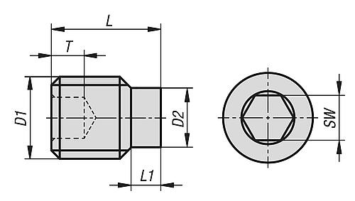 | Ausführung 1: | mit Innensechskant und Zapfen |