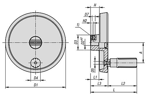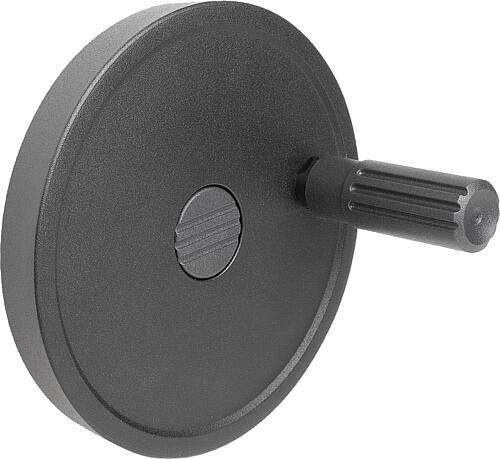Produktinformationen "Handrad D1=100, Form:B Passb.m.Nut, m. Querbohr., D2=10, Aluminium schwarz, Komp:Thermoplast, Stahlteile: Stahl - K1521.100101036"