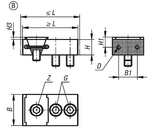 Produktinformationen "Keilspanner mit Festbacke, Einseitig Form:B geriffelt, B=50, M12, Einsatzstahl gehärtet und phosphatiert - K1745.0500212"