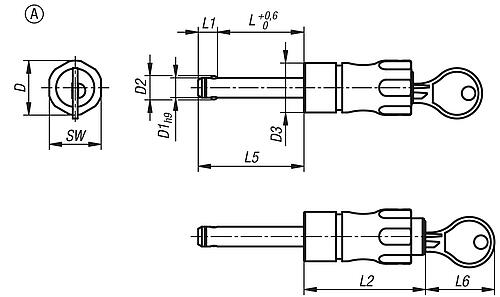 Produktinformationen "Kugelsperrbolzen abschließbar, Form:A mit Griffmulde, D1=8, L=20, Edelstahl 1.4305 - K1803.002208020"