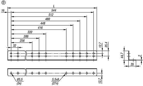 Produktinformationen "Montagewinkel, L=575, Form:D, Stahl verzinkt, 1 Paar - K2094.0575"