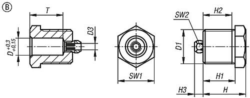 Produktinformationen "Positionierbuchse für Zustandssensor, D=3, M10X1, Form:B mit Gewinde und Bund, Edelstahl 1.4034 gehärtet Und - K1840.1203101"