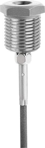 Der Sensor wird mit der Klemmmutter an der Buchse befestigt und axial eingestellt. Durch Anziehen der Klemmmutter wird der Sensor schließlich fixiert.
