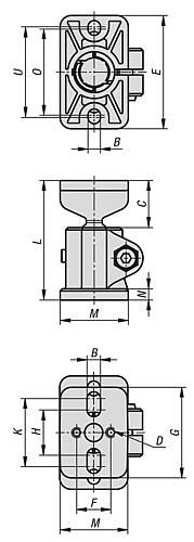 Produktinformationen "Rohrverbinder mit Fuß, für Rundrohre, M=30, G=40, L=53, A=18 mit Kugelgelenk, Thermoplast, Komp:Stahl - K0477.181"