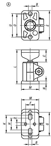 Produktinformationen "Rohrverbinder mit Fuß, für Rundrohre, M=30, G=40, L=58, A=18,1, Form:A mit Kugelgelenk, Aluminium, Komp:Stahl - K0477.5181"
