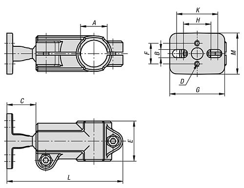 Rohrverbinder T-Stücke dienen der achsschneidenden Anbindung von Elementen. Sie können an Maschinen oder Gestellen angeschraubt werden.