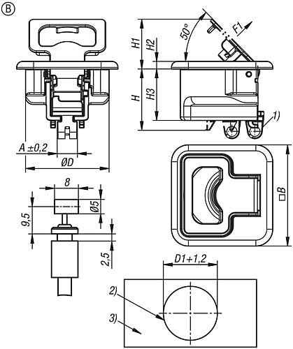 Produktinformationen "Schnappverschluss m.Bowdenzuganbind.u.Griff klappbar, Form:B nicht abschließbar, S=2-12 - K1851.1002356044"