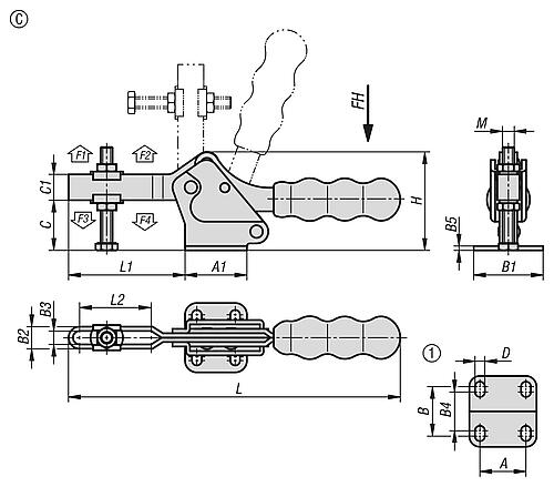 Produktinformationen "Schnellspanner, Fuß Waagrecht, f.Messtechnik, F2=3400, verstellb. Andruckspindel, H=66,5, L=225, Form:C - K2067.003400"