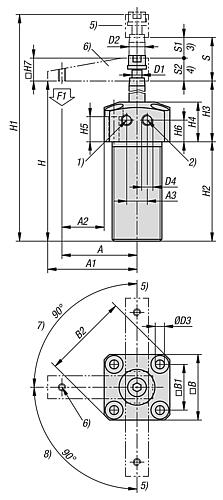 Produktinformationen "Schwenkspanner pneumatisch, einschraubbar mit Flansch, Gr.12 linksschwenkend, D=M25X1,5, H=75 - K1818.212"