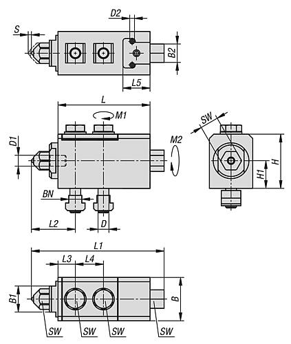 Befestigungsschrauben ISO 4014 (10.9) und Muttern für T-Nuten DIN 508 sind im Lieferumfang enthalten.