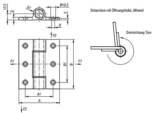 Produktinformationen "Federscharnier Feder öffnend A=82,5, B=100, Aluminium farblos eloxiert - K1182.821000"
