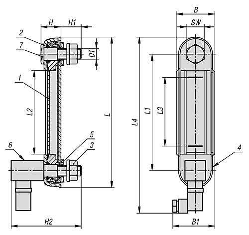 Die Befestigung des Ölstandsanzeigers erfolgt durch zwei Gewindebohrungen M12 oder alternativ über zwei Bohrungen Ø 12,2 mm (± 0,2 mm) mit Flanschmuttern. Achsabstand für die Befestigungsbohrungen = L1 ±0,3.