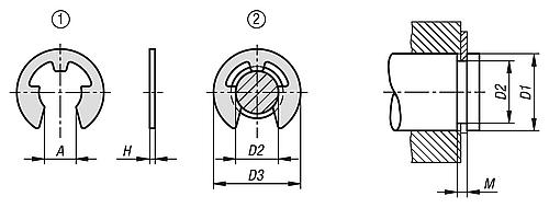 Sicherungsscheiben werden in der Nut einer Welle eingesetzt. Sie sind nach DIN 6799 genormt und für kleinere Wellen gedacht.