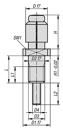 Bei Bedarf kann der Durchmesser D dem zu spannenden Durchmesser angepasst werden. In diesem Fall den Spanndorn ca. 0,2 mm (Spannweg) über den Durchmesser im Ruhestand weiten, indem man die Zugstange (Linsenschraube mit Kreuzschlitz) mit der beigestellten Sechskantmutter befestigt. Nun wird der Spanndorn auf den Innendurchmesser des Werkstückes geschliffen.