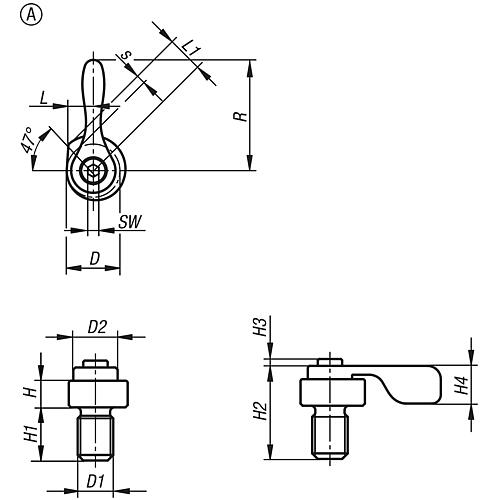 Produktinformationen "Spannexzenter mit Spannhebel, Form:A ohne Spannblech, M08, F=0,3, Vergütungsstahl brüniert - K2049.080"