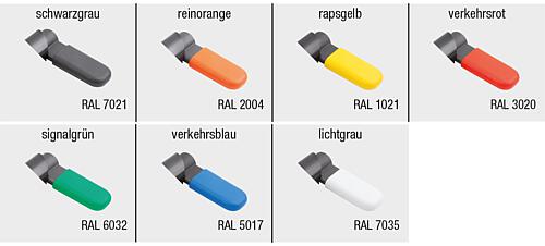 Wahlweise mit farbigen Riegelkappen aus Kunststoff.