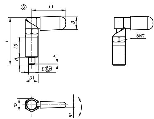 Produktinformationen "Sperrriegel mit Sechskant, D=4, M10, SW1=10, Form:C, mit Kappe, ohne Mutter, Stahl brüniert, Komp:Thermoplast - K1679.060410"