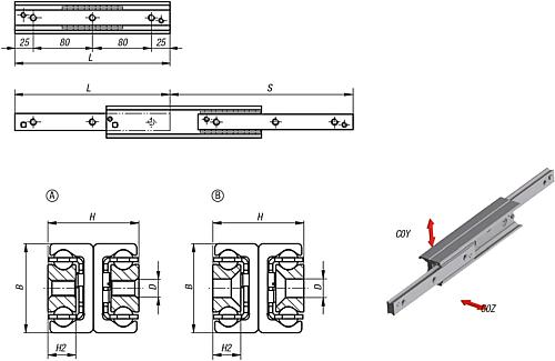 Teleskopschiene Doppel-T Gr.28 210X28X26, Form:A mit Gewindebohrung M05, S=232 - K2018.1280210