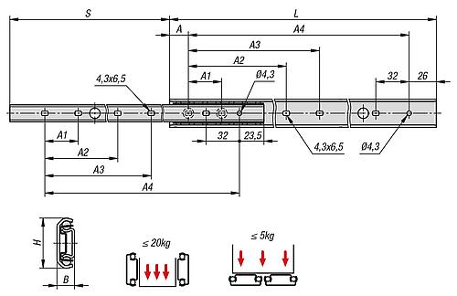 Produktinformationen "Teleskopschiene L=200, Teilauszug S=145,2, Fp2=13, Stahl verzinkt, Montage seitlich, 1 Paar entspricht 1 - K2089.0200"